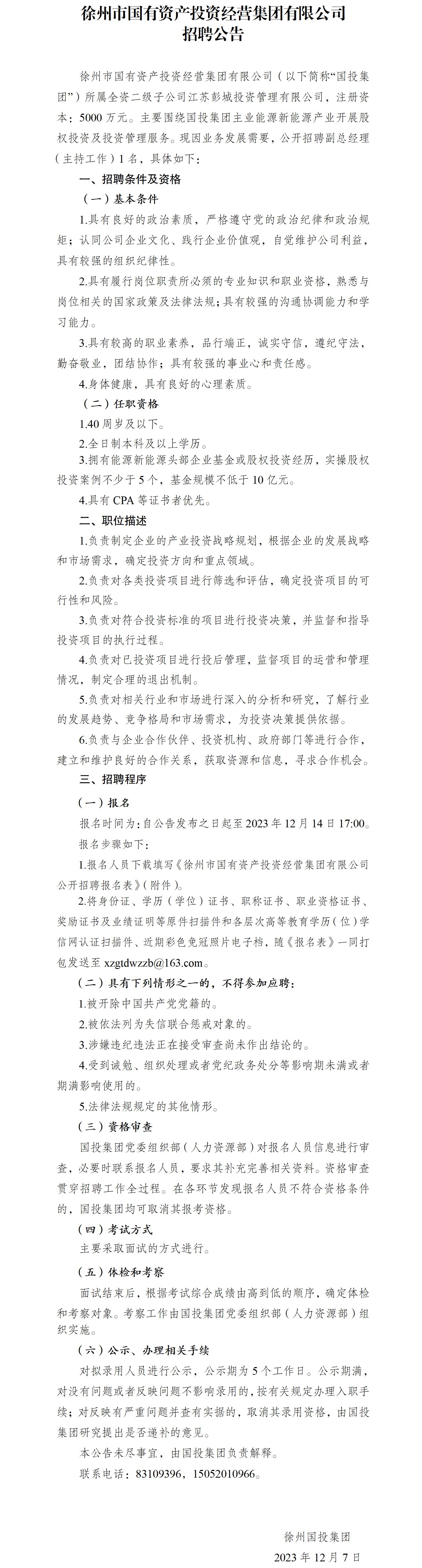徐州國投集團(tuán)公開招聘工作人員公告…