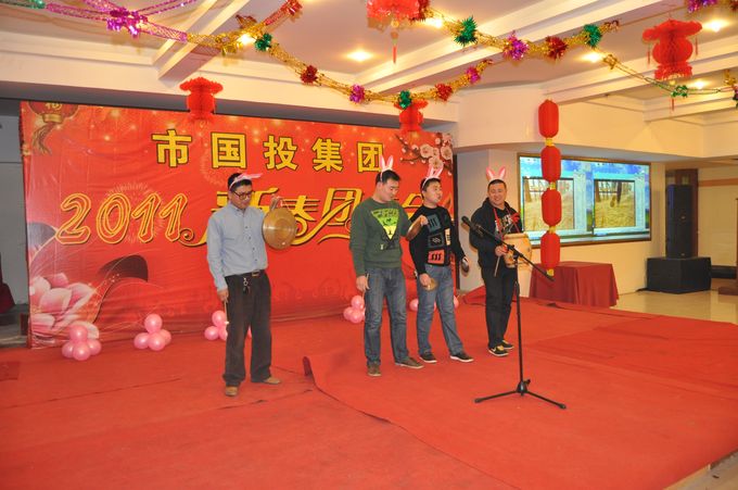 2011年1月30日晚,集團(tuán)公司在好日子酒店隆重舉辦新春團(tuán)拜會,集團(tuán)公司領(lǐng)導(dǎo)、本部全體員工、集團(tuán)公司外派人員、全資控股公司中層以上干部、先進(jìn)工作者參加團(tuán)拜會。團(tuán)拜會由趙軍、劉立吉、李小楓、夏敏四位同志主持,集團(tuán)公司董事長、黨委書記李修明同志發(fā)表了熱情洋溢的新春賀辭,并率集團(tuán)公司領(lǐng)導(dǎo)向全體員工及家屬拜年。集團(tuán)公司領(lǐng)導(dǎo)及各部室均表演了豐富多彩的文藝節(jié)目,不時贏得與會同志的熱烈掌聲。彭富公司副總經(jīng)理張愛麗表演的古箏聯(lián)奏獲表演節(jié)目一等獎。