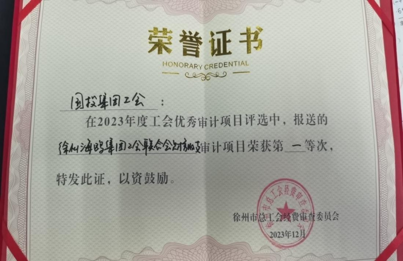 為進(jìn)一步強(qiáng)化工會經(jīng)審組織監(jiān)督職能,規(guī)范工會審計行為,切實(shí)提升工會審計質(zhì)量,市總工會經(jīng)審會開展2023年度工會優(yōu)秀審計項(xiàng)目評選工作,并于近日公布了2023年度工會優(yōu)秀審計項(xiàng)目評選結(jié)果,國投集團(tuán)選送的審計項(xiàng)目“徐州海鷗集團(tuán)工會聯(lián)合會財務(wù)收支”榮獲第一等次。