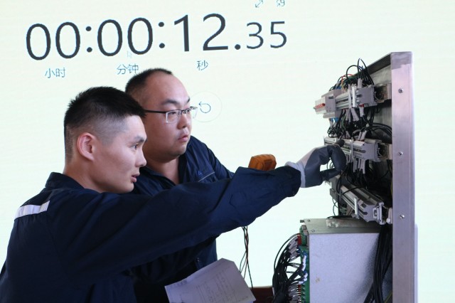 練兵場亦是競技臺。15時(shí)30分,高壓開關(guān)柜回路故障消缺實(shí)操比賽開始。多支參賽隊(duì)伍輪番上陣,在裁判嚴(yán)格監(jiān)督下展開較量。面對預(yù)設(shè)的復(fù)雜回路故障,選手們身著統(tǒng)一工裝,佩戴齊整防護(hù),審閱圖紙、測試分析、精準(zhǔn)排障。每一次舉手示意操作、每一次工具精準(zhǔn)落點(diǎn),都體現(xiàn)著“安全第一、規(guī)范先行”的鐵律。賽場氣氛緊張激烈,選手們沉著冷靜的故障診斷能力與嫻熟的動手能力贏得陣陣贊嘆。