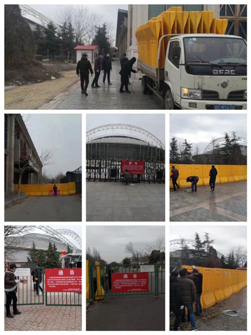 3.開展外圍防疫。因特殊地理位置,華強(qiáng)資產(chǎn)公司委托成功物業(yè)公司承擔(dān)本部外圍防疫工作,經(jīng)過(guò)現(xiàn)場(chǎng)勘察制定了園區(qū)水馬封堵及復(fù)工園區(qū)防疫方案。在目前防疫工作嚴(yán)峻、水馬租賃困難及運(yùn)輸不便的情況下,通過(guò)各種途徑聯(lián)系到租賃方,于2月11日上午組織成功大廈工程人員、藝術(shù)館項(xiàng)目人員以及華強(qiáng)安防人員利用半天時(shí)間進(jìn)行突擊封堵,除主要出入口封堵外,還對(duì)在仔細(xì)排查園區(qū)發(fā)現(xiàn)的十余處人為損毀缺口進(jìn)行封堵處理,同時(shí)清退閑雜人員并張貼封園通告。